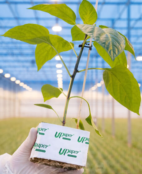 UPuper®CB 100S grow cubes can be used as an intermediary or final container for planting. Cubes provide a high-quality stonewool substrates for hydroponic greenhouse vegetables cultivation.Most commonly use product in growing cube series.